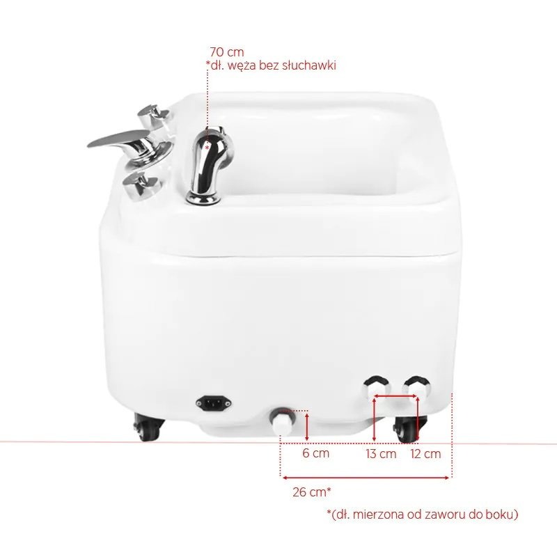 Tuš kadica na kotačima za tretmane pedikure, s mogućnošću izravnog spajanja na odvod vode, zahvaljujući kojoj će se tretmani pedikure izvoditi na najvišoj razini.